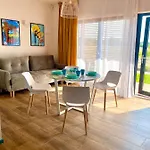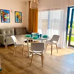 Mit Blick auf den Garten besteht das Apartment aus einem Balkon, einer Terrasse und einer Sitzecke, sowie ist mit einem Sofa ausgestattet. Zu den Unterhaltungsmöglichkeiten im Zimmer gehören ein Flachbildfernseher mit Satellitenkanälen. Gästen stehen Betten mit hypoallergenen Kissen zur Verfügung. Das Apartamenty Czerwone Korale verfügt über ein Badezimmer mit einem Haartrockner, einem Wäschetrockner und Handtüchern. Außerdem gibt es eine getrennte Toilette und eine Dusche usw.